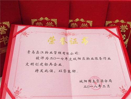 被評為“城陽區物業服務行業文明創建標兵企業”
