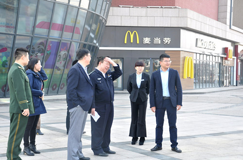 為貫徹落實市政府對于“加快實施國際城市戰略推進全市觀光購物餐飲場所品質提升”工作的要求,3月13日上午,青島市城陽區副區長于延濤,帶領城陽區公安局李局長及區安監局、商務局、衛生所等相關部門負責人一行,蒞臨青島鑫江東方城,進行工作調研。鑫江集團副總經理趙文博,鑫江東方城副總經理邱晶及相關部門負責人陪同檢查。