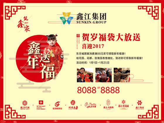 2016轉(zhuǎn)眼即逝,奏響了2017的新篇章,回首過(guò)去20載,鑫江集團(tuán)立足城陽(yáng)南,與城市并肩一路同行! 值此佳節(jié)來(lái)臨,為感謝您的多年支持陪伴,鑫江集團(tuán)重磅四重驚喜,傾城來(lái)襲,恭祝島城人民新年快樂(lè)。