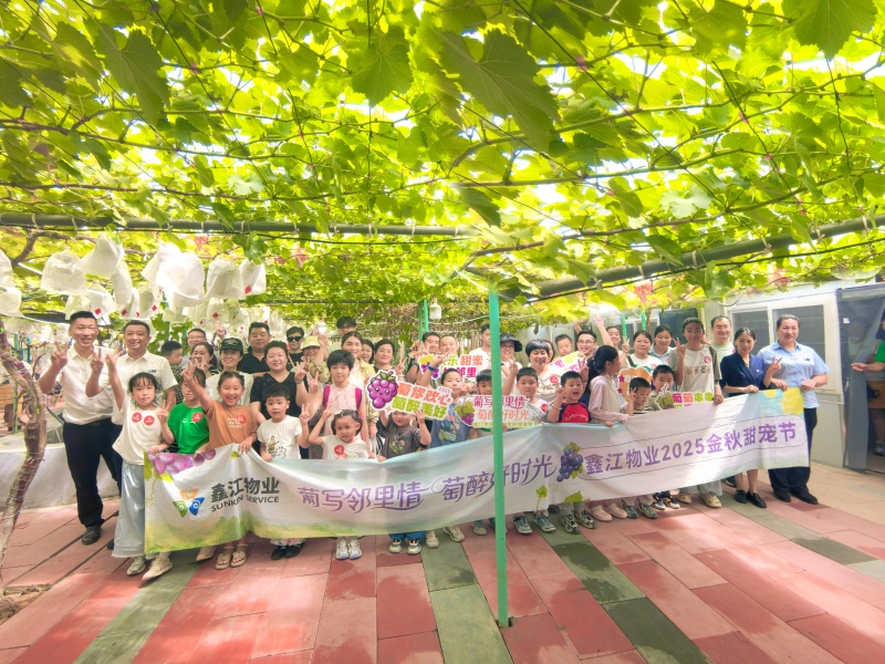 秋光瀲滟,葡香滿園。近日,鑫江物業“葡寫鄰里情,陶醉好時光”2025金秋甜寵節甜蜜收官。我們與眾多業主家人一同暫別城市喧囂,奔赴自然,在豐收的田園詩意中,共釀一段甜蜜歡愉的鄰里時光。
